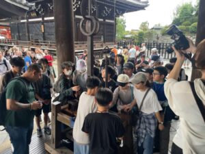 音羽の滝ではそれぞれの願いを願掛けして見学を終了。