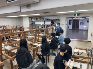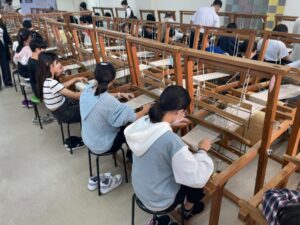 ホーム > 日々の活動の様子 【6年生】修学旅行⑩ 西陣織体験 西陣織体験を行いました。 1人一つの織り機の前に座り、作り方の説明を受け、作業開始です。 横糸を右左、順番に通して作っていきます。 全員が世界に一つだけの素敵な敷物を作ることができました。 次は鹿苑寺にむかいます。 カテゴリー:日々の活動の様子 シェアする Twitter でシェア はてなブックマークに保存 LINE でシェア Facebook でシェア Pocket に保存 Feedly で購読 関連投稿 日々の活動の様子 / 学年 【学校】目の愛護デー 日々の活動の様子 / コミュニティ・スクール 駐車場が完成しました 日々の活動の様子 1年 つうがくろたんけん 学年 / 日々の活動の様子 【5年生】手話教室 日々の活動の様子 / 学年 【6年生】修学旅行 ②法隆寺 日々の活動の様子 / 学年 【6年生】修学旅行 ⑬解散式 前の投稿 【6年生】修学旅行⑨ 朝食 退館式 出発 次の投稿 【6年生】修学旅行⑪ 鹿苑寺