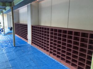 当日は、体育館横の下駄箱の修繕作業をしていただきました。