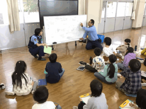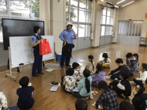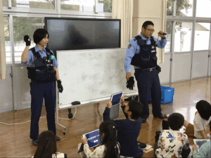 10月22日には、川井町交番から2名の警察官の方にご来校いただき、勤務の様子や仕事に対する気持ち、服装の装備など教科書では知ることができない知識や思いを教えていただきました。