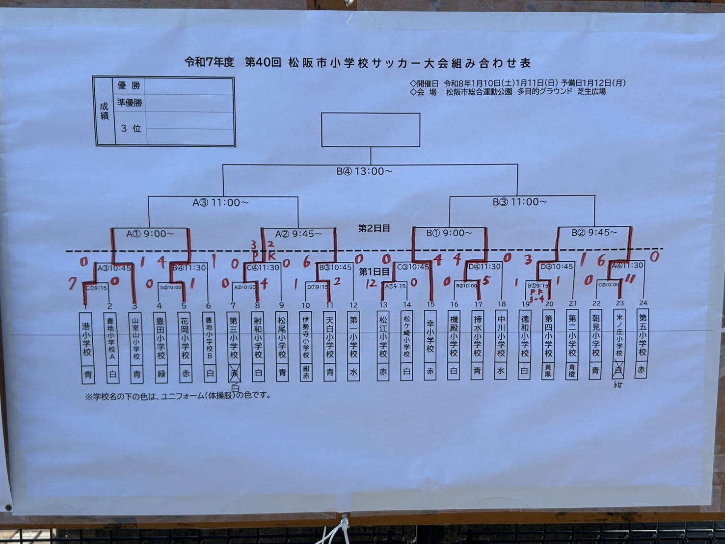 本日行われた松阪市小学校サッカー大会1日目の結果です。