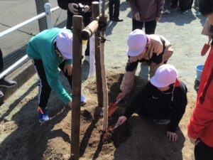 13日(金)は閉校記念として、校庭に桜の木を植樹しました。