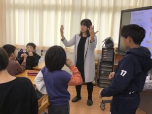 ブラジルの食べ物や自然、遊びなどについて紹介していただき、子どもたちは興味津々で話を聞き、質問もたくさん出ました。