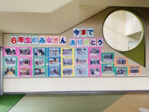 9日(月)今日から児童玄関のロビーには、「6年生ありがとう」の掲示が設けられました。